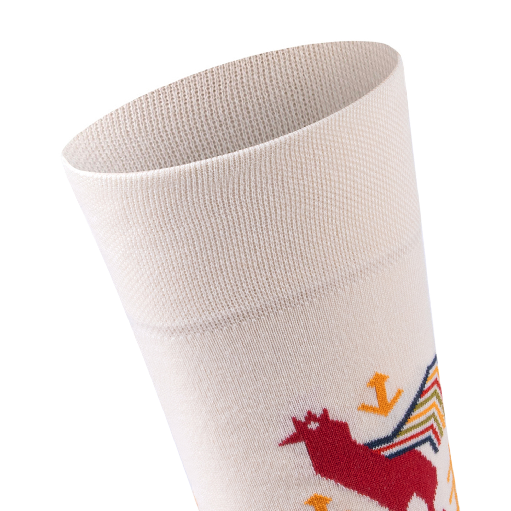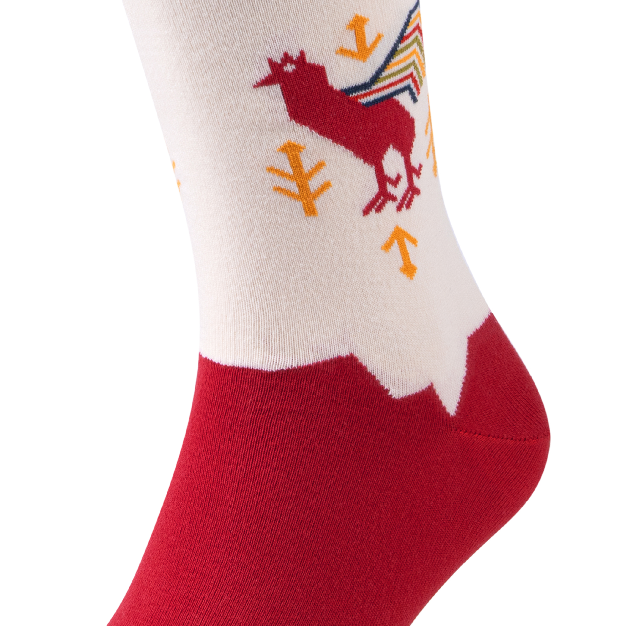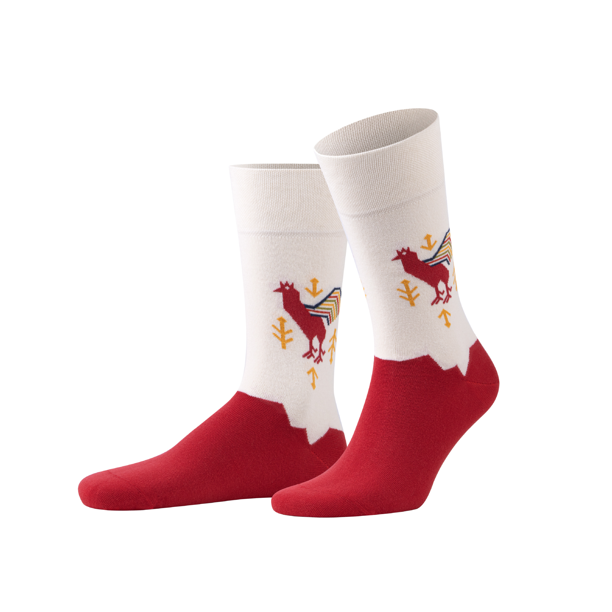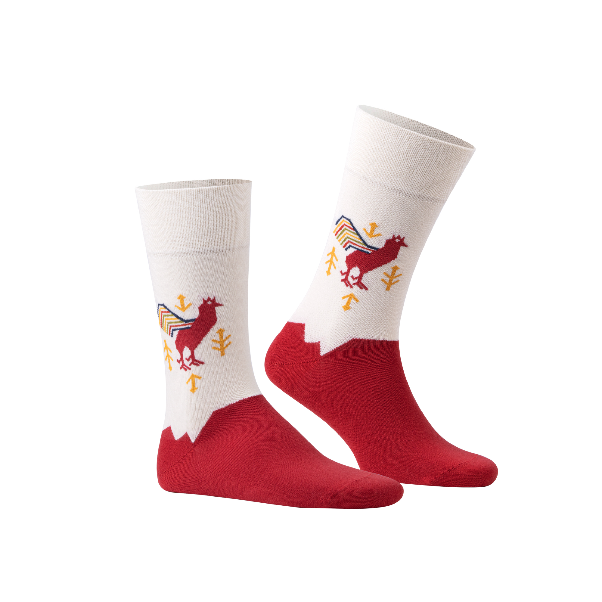 Աքլորը լույսի և նոր սկզբի խորհրդանիշ է։ Արևածագի ավետաբեր։ Էներգիա։ Արթնացում։ Ավանդական հավատալիքներում՝ պաշտպանիչ ուժ։ Պտղաբերության, բարօրության և տան ներսում դրական էներգիայի նշան։ Բաղադրություն՝ 80% բամբակ, 7% պոլիամիդ, 10% լյուրեքս 3% էլաստան։