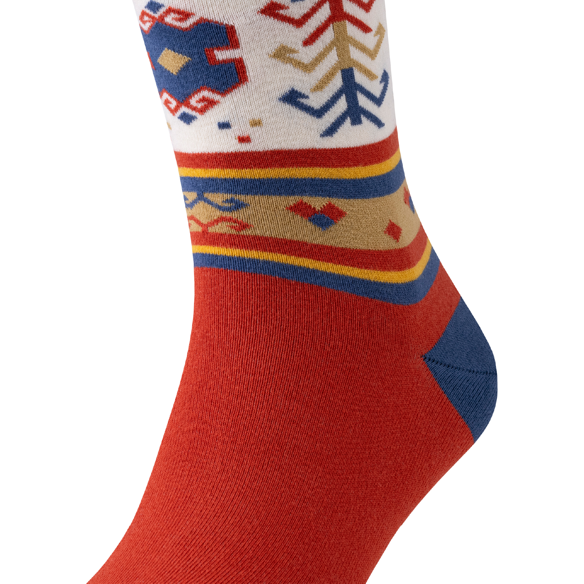 Գողթնը հնչեղ գույն է։ Ուժով ներծծված զարդանախշ։ Տարածաշրջանի պատմությունը նշանավորվել է դրամատիզմով և վեհությամբ, սակայն նրա նախշերի խորքում ապրում է կյանքի անզուսպ էներգիան։ Քաջություն։ Պտղաբերություն։ Խորություն։ Այս գուլպաները երկխոսություն են ժառանգության հետ։ Բաղադրություն՝ 80% բամբակ, 7% պոլիամիդ, 10% լյուրեքս 3% էլաստան։