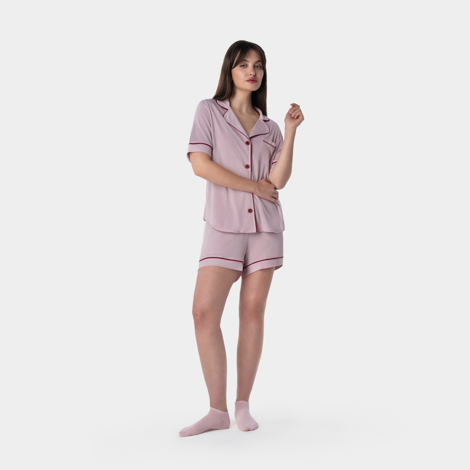 Գիշերազգեստի հավաքածուն ստեղծված է ապահովելու հարմարավետ և հանգիստ քուն։ Բարձրորակ մոդալ-բամբակե գործվածքը թույլ է տալիս մաշկին շնչել, իսկ ազատ կտրվածքը ապահովում է լիարժեք շարժման ազատություն։ Հավաքածուի մեջ ներառված են կիսաթև շապիկ և կիսատաբատ։