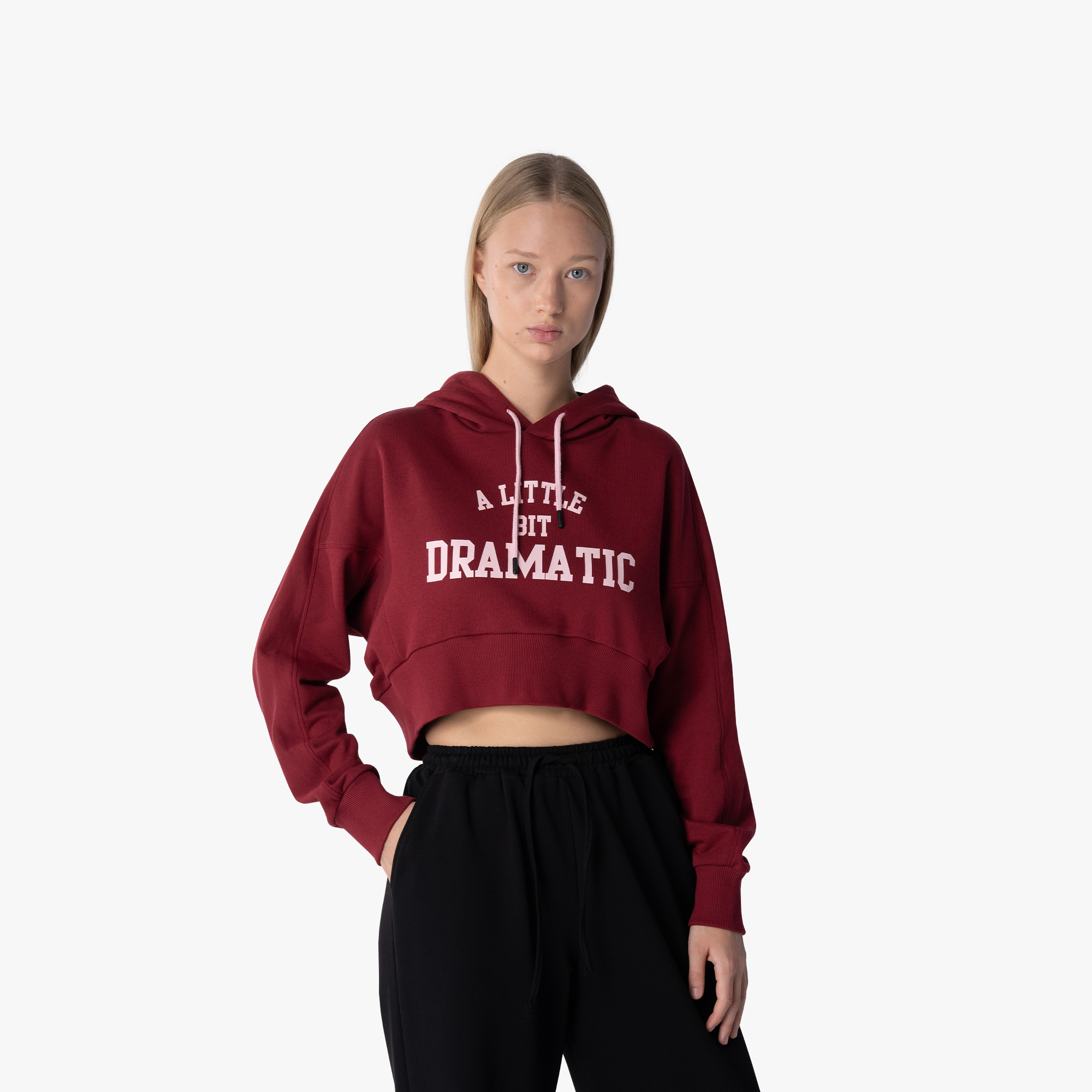 Ոճային և հարմարավետ կարճ հուդի՝ «A Little Bit Dramatic» տպագրությամբ։ Թեթև և հաճելի գործվածքը պահպանում է շարժման ազատությունը և ապահովում է ժամանակակից քաղաքային տեսք։ Հիանալի է համադրված տաբատների և ջինսերի հետ՝ ստեղծելով առօրյա և քաղաքային կերպար։