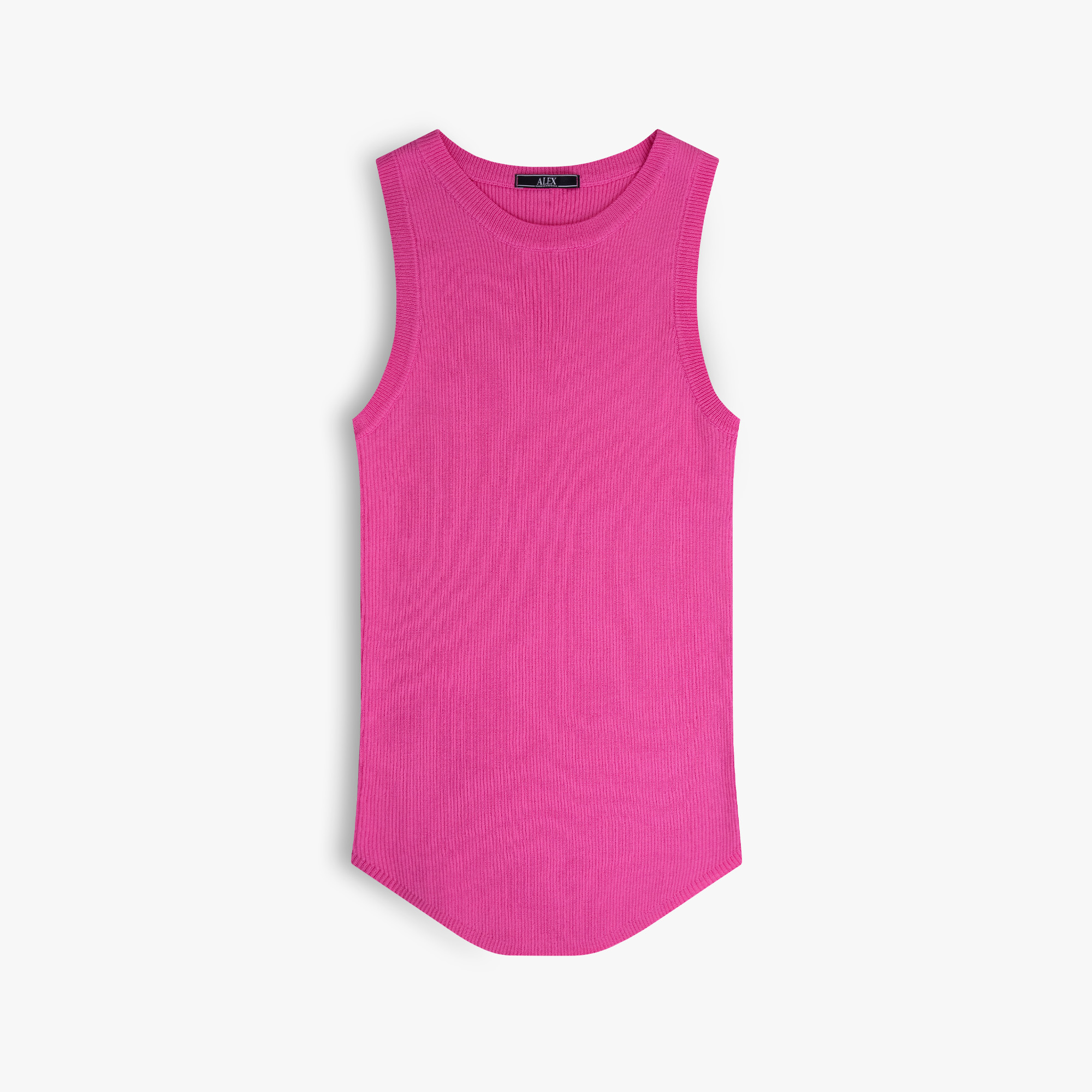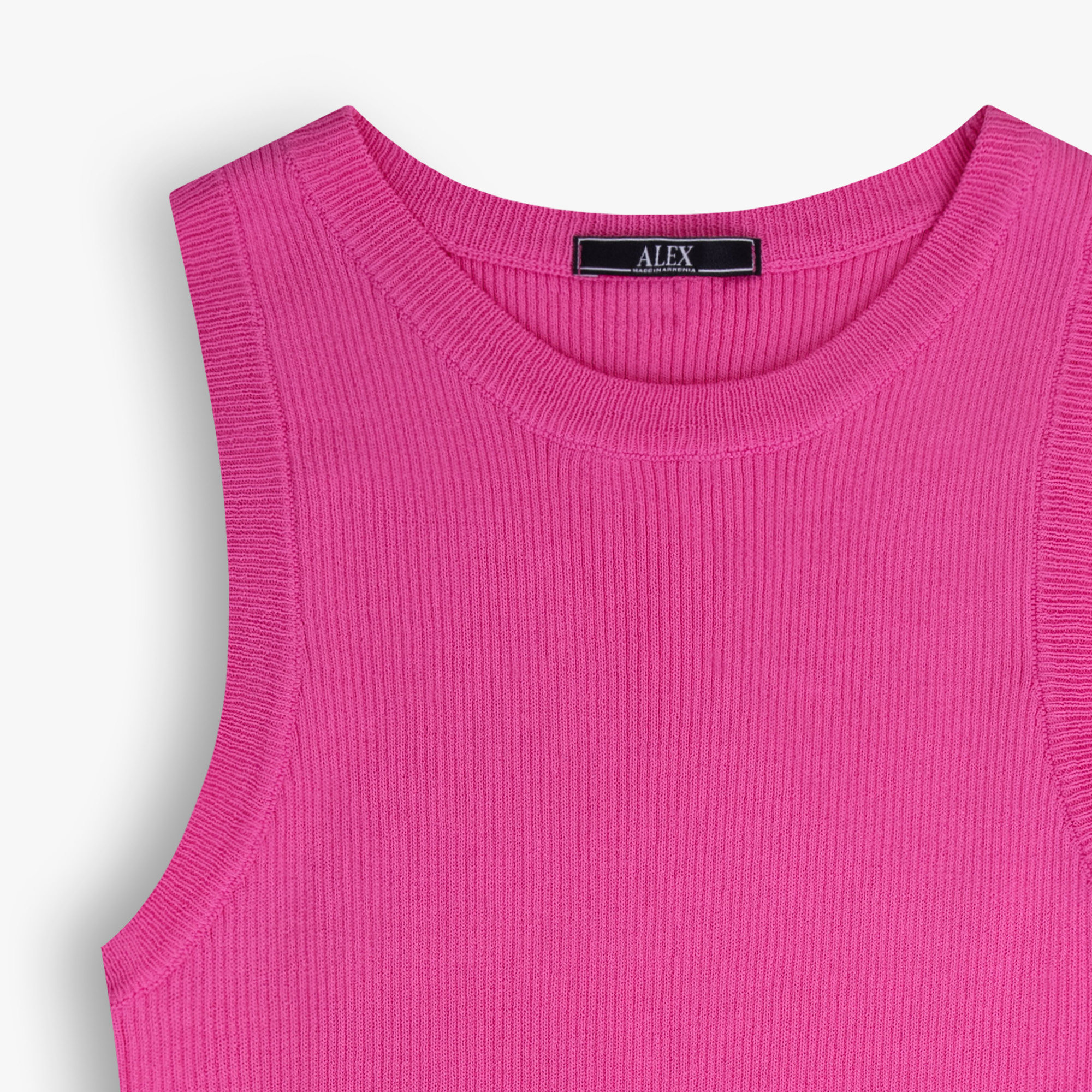 Կանացի երկար անթև տոպը պատրաստված է ռիբ (գծավոր) հյուսքով վիսկոզայից, որն ապահովում է փափկություն, թեթևություն և հիանալի շնչելիություն։ Կտորը նուրբ է մաշկին և գեղեցիկ նստում է մարմնի վրա՝ ընդգծելով կազմվածքը՝ առանց անհարմարության։ Ռիբ հյուսքը տալիս է էլաստիկություն և պահպանում է ձևը։