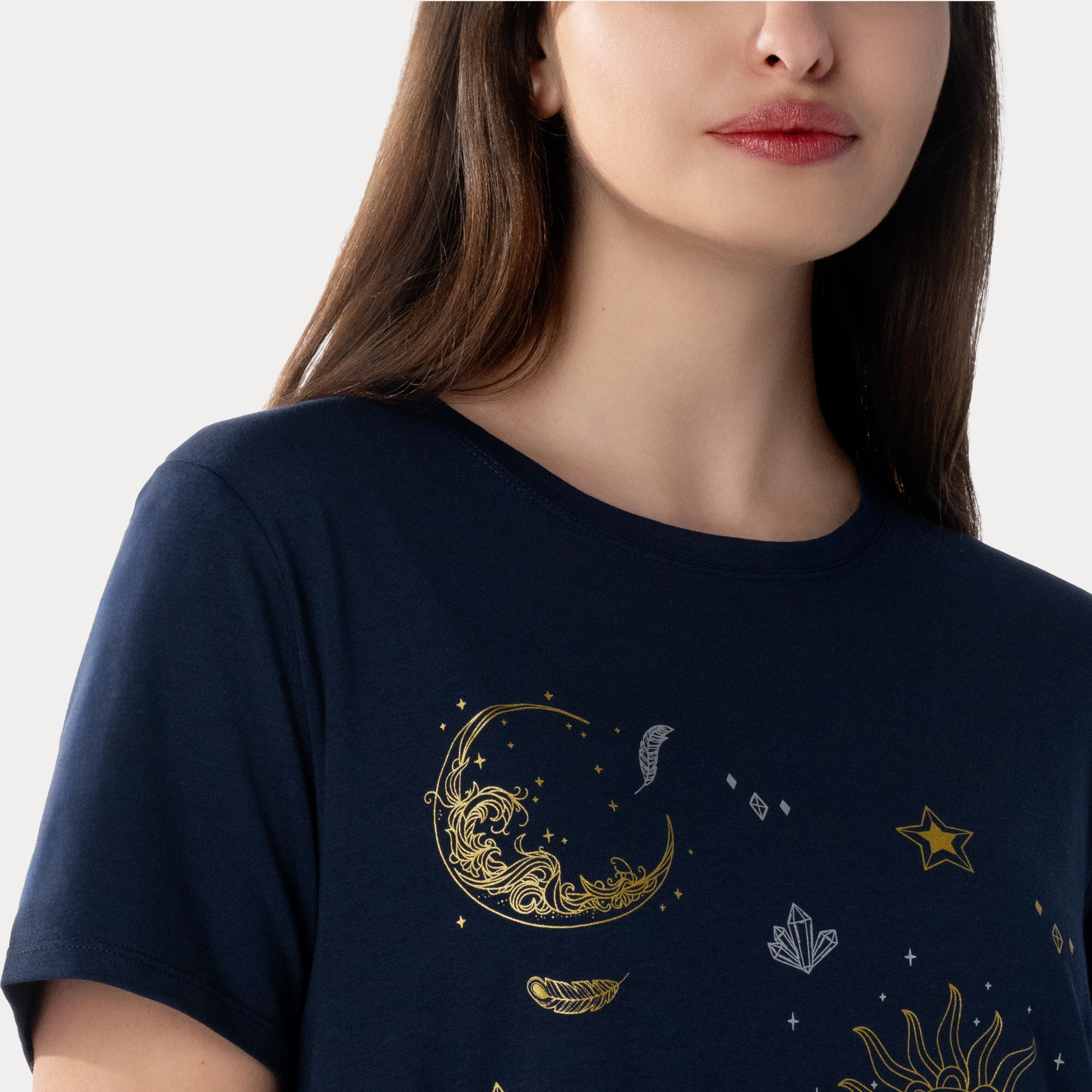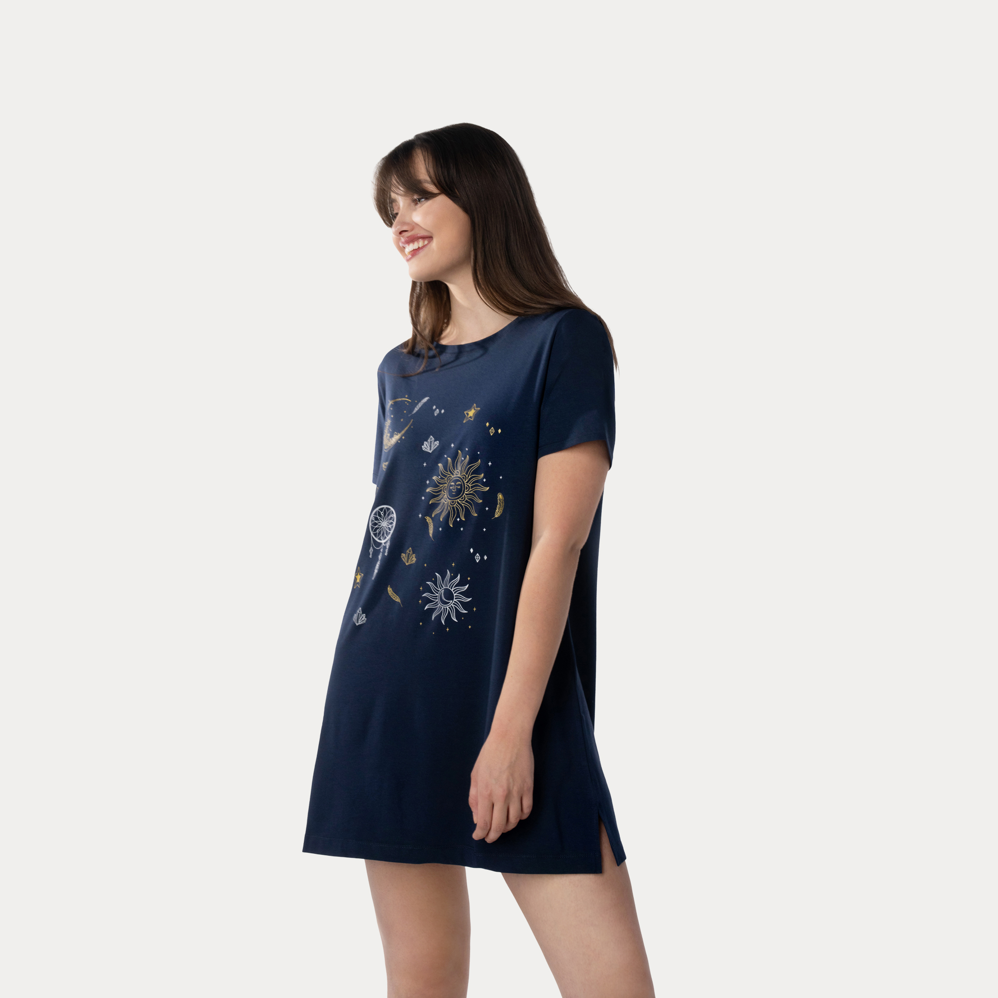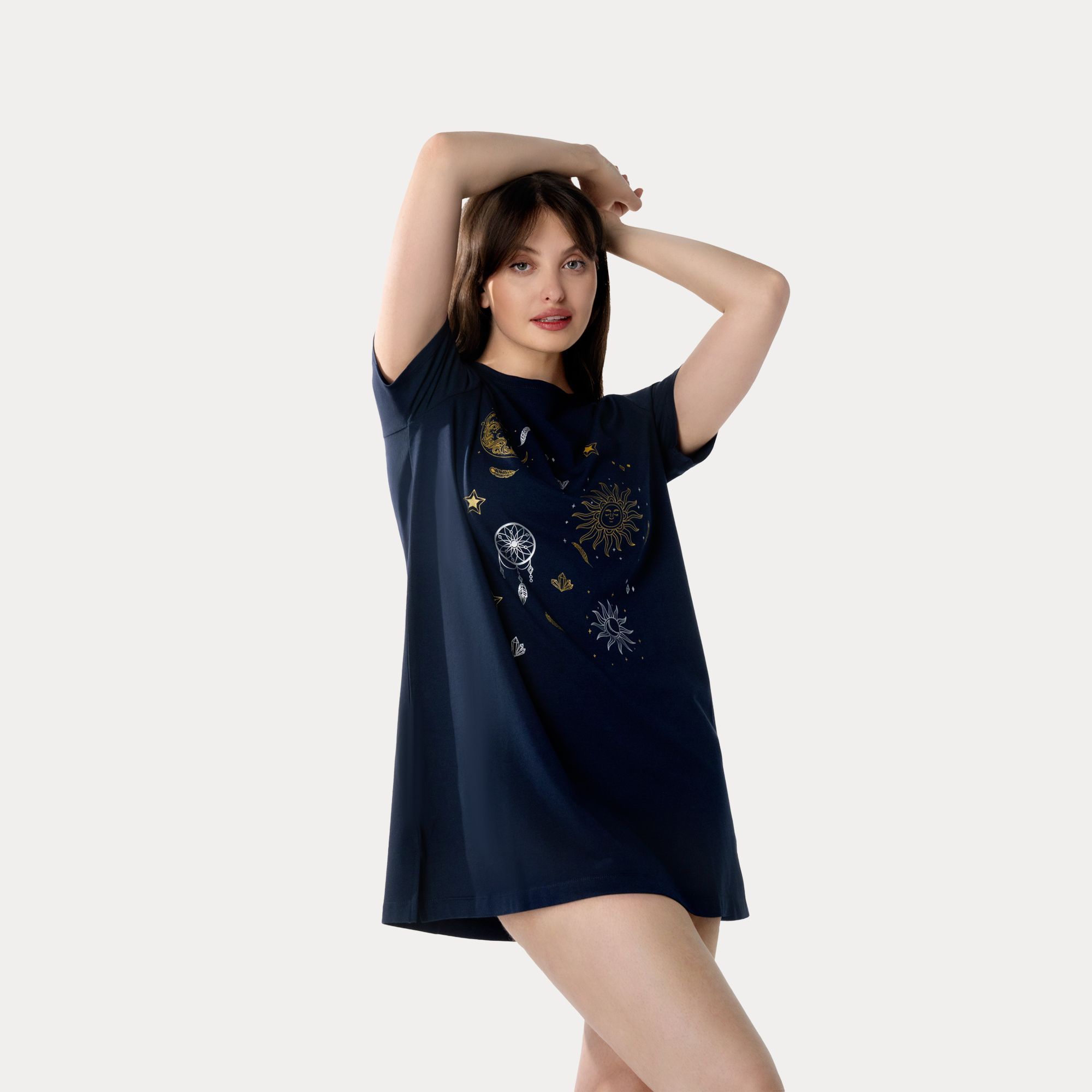 Starry Dream գիշերազգեստը ստեղծված է ապահովելու հարմարավետ և հանգիստ քուն։ Բարձրորակ բամբակե գործվածքը թույլ է տալիս մաշկին շնչել, իսկ ազատ կտրվածքը ապահովում է լիարժեք շարժման ազատություն։ Գիշերազգեստը զարդարված է աստղային ու լուսնային նուրբ նախշերով, որոնք տալիս են երազային և էլեգանտ տեսք։ Իդեալական է ինչպես քնի, այնպես էլ տան հարմարավետ ժամանցի համար։ Բաղադրություն 46% բամբակ, 46% մոդալ, 8% էլաստան: