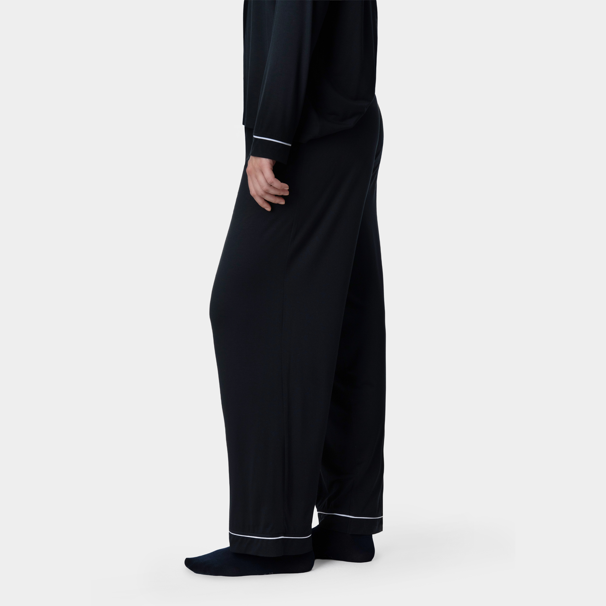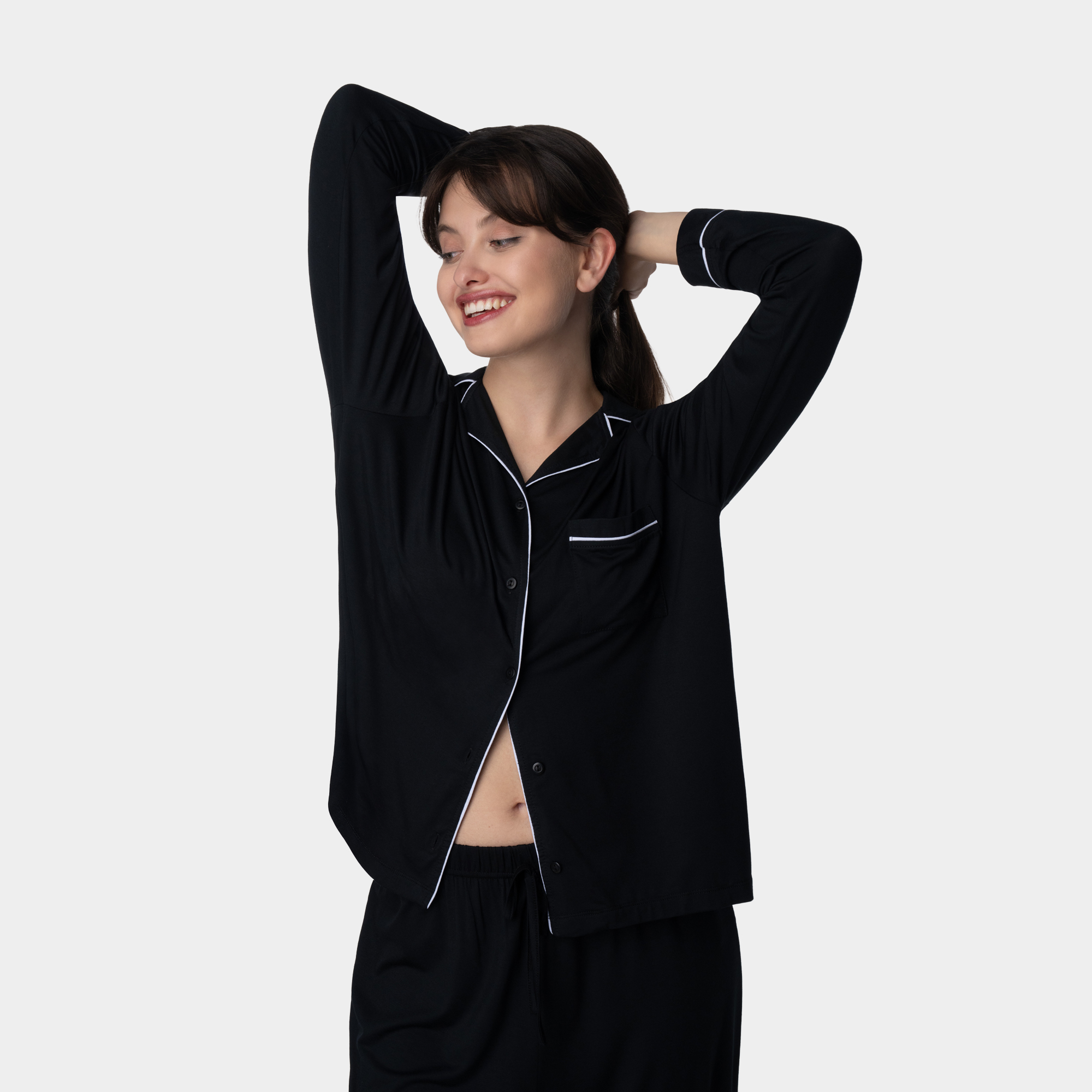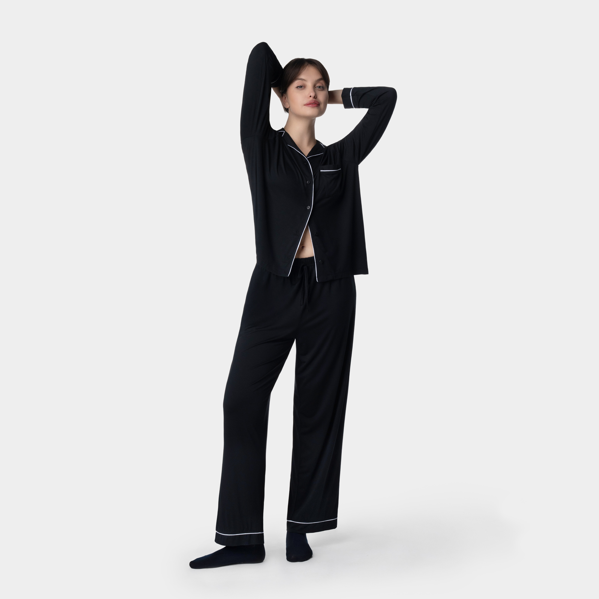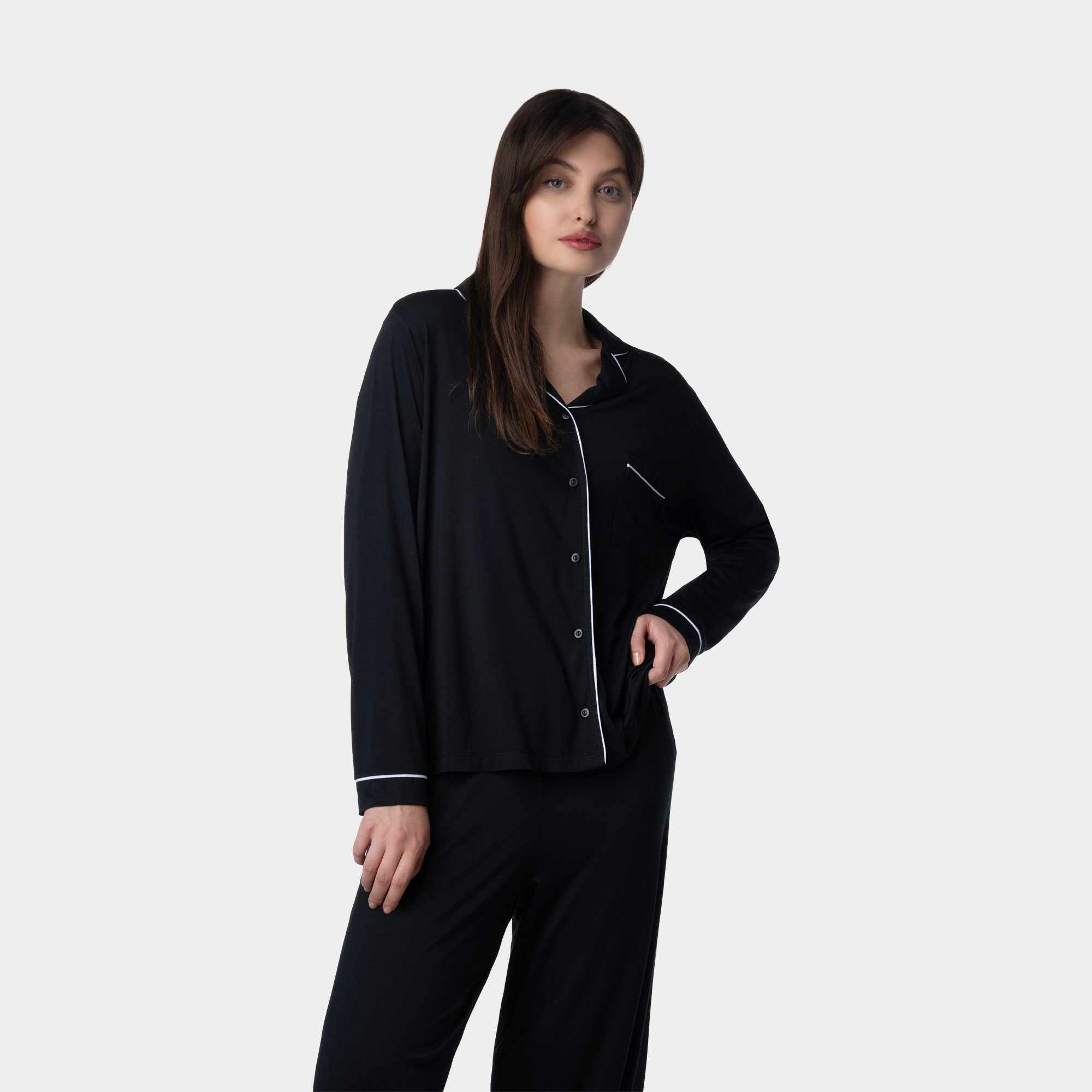 Հավաքածուն ներառում է տաբատ և երկարաթև շապիկ, որոնք միասին ստեղծում են ներդաշնակ, կանացի և հմայիչ կերպար։ Լայն ու հարմարավետ սիլուետը, նուրբ եզրագծերը և մեղմ փայլ ունեցող երանգը իդեալական են ինչպես հանգիստ ու որակյալ քնի, այնպես էլ տան հարմարավետ հագուստի համար։
